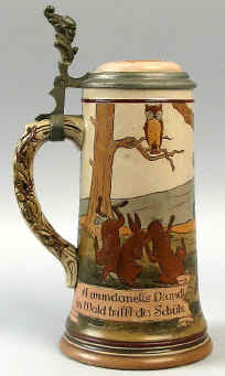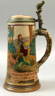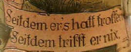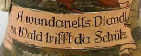 This is a 0.5 L etched Marzi & Remy marked "Gesetzlich Geschützt 1653" (patented; mold #1653) ca. 1900. Self explanatory verse, written in Bavarian dialect. | |