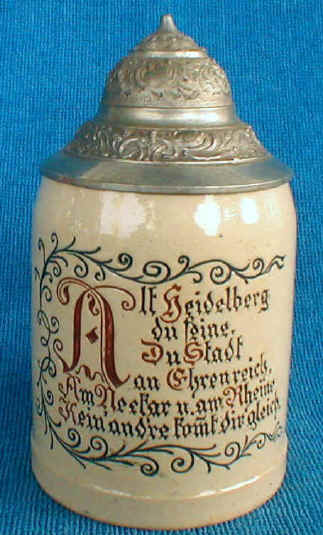 The stein was made by Rheinhold Merkelbach, ca. 1900. Note: The dash over the last "m" means "mm". | |