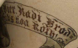 | The sentiment here is that all one needs to survive is beer, radishes and bread, but I think there's more to life than just survival. This stein is a PUG (printed under glaze) by Villeroy & Boch (no "M" or "Mettlach") or date mark, ca. 1880's. | |