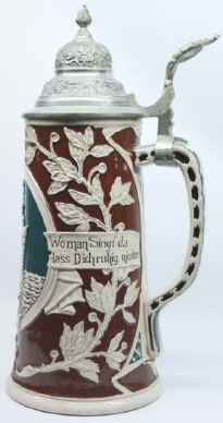 The verse is self explanatory on this relief, musical theme stein marked "583 Germany H", ca. 1900. | |