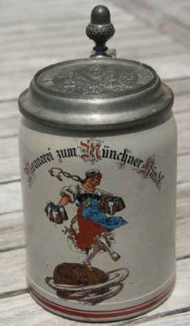 This is a Munich brewery stein from the "Münchner Kindl" brewery ca. early 1900's.