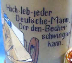 Brüder! Hier steht Bier statt Wein, traute Brüder schenket ein Hoch leb jeder deutsche Mann, der den Becher schwingen kann. |