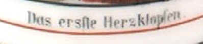 Can you remember your first sweetheart? This is the theme of the transfer scene on this porcelain stein with lithophane (transparent image in base when viewed by holding up to light) ca. 1900. | |
