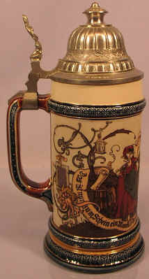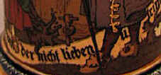 | This is the sentiment that's hard to argue with on this etched Mettlach stein mold #2280 dated 97 for 1897. | |