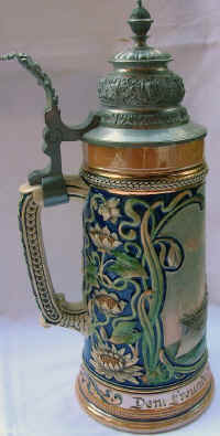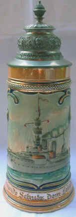 | This appears to be a generic destroyer of the German Navy and is unnamed, but might also be the SMY Hohenzollern II, the private yacht of Kaiser Wm II. The stein is marked "1547 14", ca. early 1900's. | |