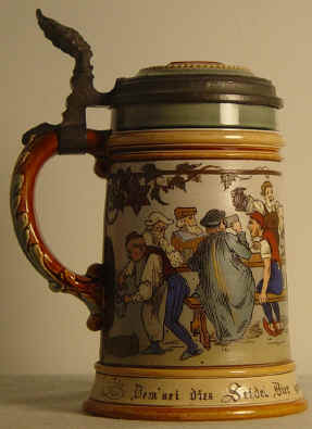Sounds right to me on this etched Mettlach stein marked with the Mettlach logo and mold number 2028 and dated 1897. | |