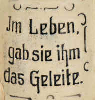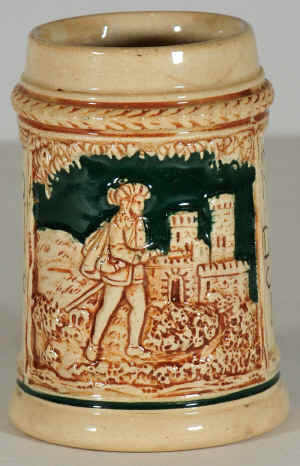 | Dornröschen (Sleeping Beauty) is an ubiquitous legend made famous by the Brothers Grimm in 1812 and again in 1959 by Walt Disney. The theme is appropriate for this mini- or child's mug (stein without lid) ca. early 1900's. | |