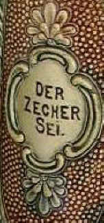 The verse rhymes in both German and English on this relief stein by Adolph Diesinger marked "650", ca. 1900. | |