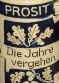 That's the way it goes on this relief stein marked with the Marzi & Remy logo and "Made in Germany 1994 8" ca. early 1900's. | |
