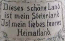 | This is the national anthem of Steierland (the province of Styria in southeast Austria) on a relief stein ca. 1900. | |