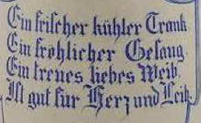 Ein frischer kühler Trank, ein fröhlicher Gesang, ein treues, liebes Weib, ist gut für Herz und Leib. |