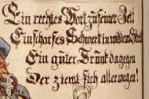 Ein rechtes Wort zu seiner Zeit, ein scharfes Schwert in wildem Streit, ein guter Trunk dagegen der ziernt sich allerwegen! |