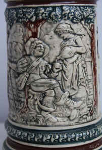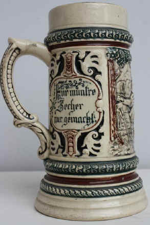 | Think what you would like to think is the rhyme on this pottery stein (without lid) marked only "779" ca. 1900. | |