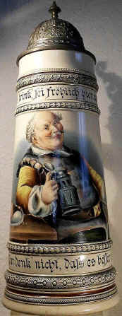 This prophetic verse teaches to take joy of life here on the earth because it won't get any better here or in the hereafter. The 2-liter transfer and hand painted stein is ca. 1900. | |