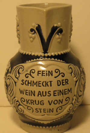 Fein schmeckt der Wein aus einem Krug von Stein. |