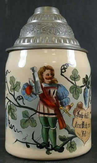 Party animals were as welcome then as they are now. This is a PUG (printed under glaze) stein marked only 1143 in black ink ca. 1900. | |