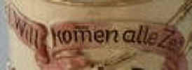 | A good motto all year around on this 1/2 L. pottery stein marked "Gesetzlich Geschützt (legally protected = patented) 1801" ca. 1900. | |