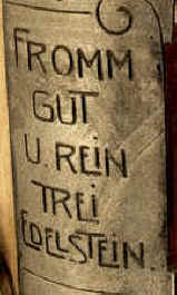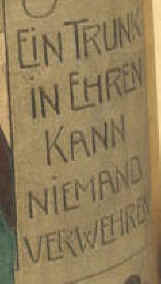 Fromm, Gut und Rein trei Edelstein. Ein Trunk in ehren kann niemand verwehren. |