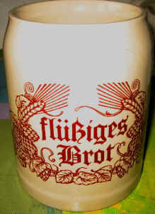 Beer has been used for centuries as a basic food staple and that's what is expressed on this stein without lid, ca. post WW II.