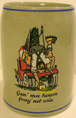 The scene tells it all on this stein (without lid) marked with the Gerz logo and "7 Made in Germany" ca. post WWII. | |
