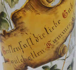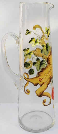 This same verse appears on this hand painted glass pitcher, ca. 1900. | ||