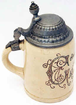 I would say it's true what this verse conveys on this stein marked with the Reinhold Merkelbach logo and "C22", ca. 1900. | |