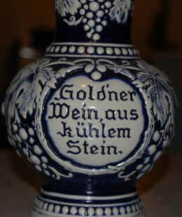 | Gold'ner Wein aus kühlem Stein. | Golden wine from cool stone(ware). |