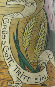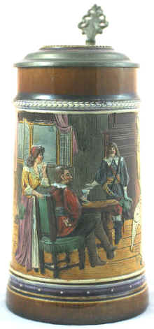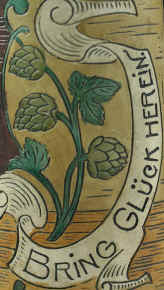 Grüß Gott! is literally "Greet God!" and is used to say "Hi" or "Greetings" in Bavaria and Southern Germany. This is an etched stein by JWR (JW Remy) marked "1343 Germany" ca. 1900. | |