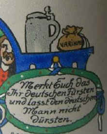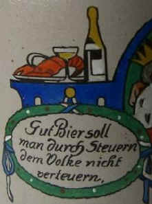 Gut Bier soll man durch Steuern dem Volke nicht verteuern, merkt Euch das ihr deutschen fürsten und lasst den deutschen Mann nicht Dürsten. |