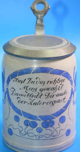 If you own the stein, you own the hangover that goes with drinking too much out of it is the theme on this Jugendstil (youth style = modern art) stein marked with the logo of Brüder Thannhauser of Munich, ca. early 1900's. | |