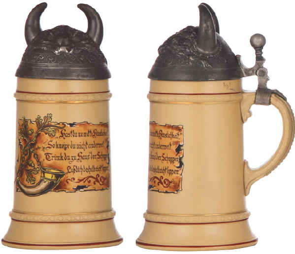 | If you don't have a good family life, it won't get better by going out to drink. So stay at home and have your happy hour with the family and that will help keep things together. The hand-painted stein is marked "VB" for Villeroy & Boch and mold number 406, ca. 1900. | |