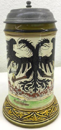 | This stein is a printer's occupational marked with the Mettlach logo, mold number 2727 and dated 1901. | |