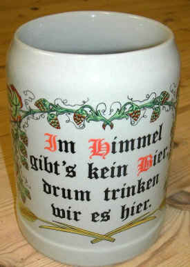 Im Himmel gibt's kein Bier, drum trinken wir es hier. |