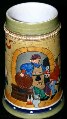 | This is a good generic beer commercial on an etched stein marked "Germany 909" ca. 1900. | |