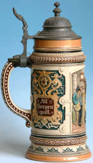 Another good reason to have beer around when company comes on this relief probable Marzi & Remy stein marked only "67 8" ca. 1900. | |