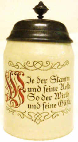 It seems like the branches feed off of the tree and the drinkers sponge off of the innkeeper. The PUG (printed under glaze) stein is ca. 1900. | |