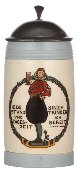 | This is the sign of a real party animal on this etched, Mettlach stein mold number 3004 designed by Franz Ringer, ca. early 1900's. | |