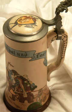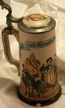 Words to live by on this etched stein marked "TP" (Paulus & Thewalt) ca 1900. | |