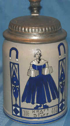 The verse refers to both the young lady and the beer she's delivering on this Jugendstil (youth style = modern art) stein, ca. early 1900's. | |
