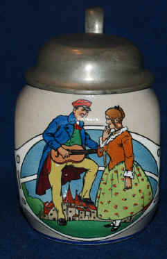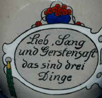 These are three things that should always be part of one's life on this stein marked with the Merkelbach & Wick logo, ca. early 1900's. | |