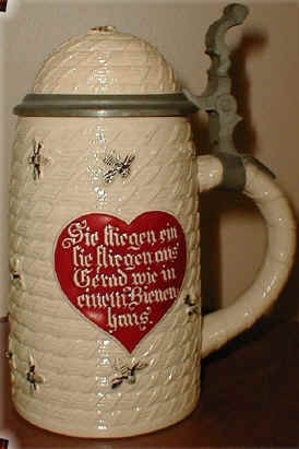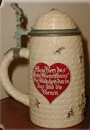 | This is an old rhyme appropriately on a beehive character stein made by Reinhold Merkelbach #1384 ca. 1900. | |