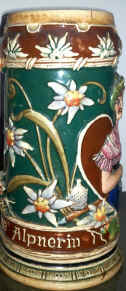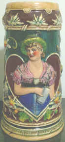 This is a self evident verse on relief stein missing lid marked "1050", ca. early 1900's. | |