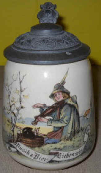 Another truism on this Villeroy & Boch Mettlach PUG (printed under glaze) stein marked with the mold number 2349 and decor number 1023 and dated 1897. | |