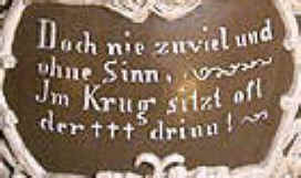 Nach der Arbeit Müh' und Schweiß, aus mir zu laben ich dich heis'. Doch nie zuviel und ohne sinn, im Krug sitzt oft der (Teufel) drinn! Drum treib' Ihm aus! |