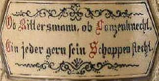 Ob Rittersmann, ob Landesknecht, Ein jeder gern sein Schoppen zecht. |