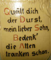 This verse also appears on this Stoneware, relief, 3.6L Mettlach Stein, Catalog # 2930. | ||