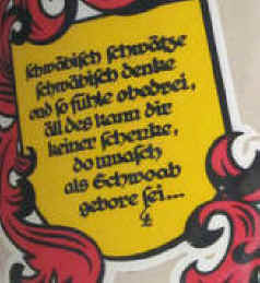 Schwabian twaddle (dialect) Schwabian (manner of) thinking and a feeling of aloofness All this, nobody can give to you you have to be born as a Schwabian Authentic Schwabian |