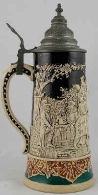 The verse is self explanatory on this relief, party stein marked only with the form number 303, ca. 1900. | |