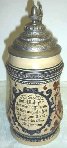 Sounds familiar on this cute Rheinhold Merkelbach stein # 234 ca. 1900. | |