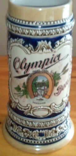 This is an advertising stein for the Olympia Brewery in Tumwater, Washington State made by Ceramarte of Brazil, South America ca. post WWII. | |